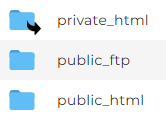 - Zie je bij de map private_html een gebogen pijltje? Dan staat alles goed (dit is een 'symlink'). In de afbeelding hieronder zie je hoe dat eruit ziet.